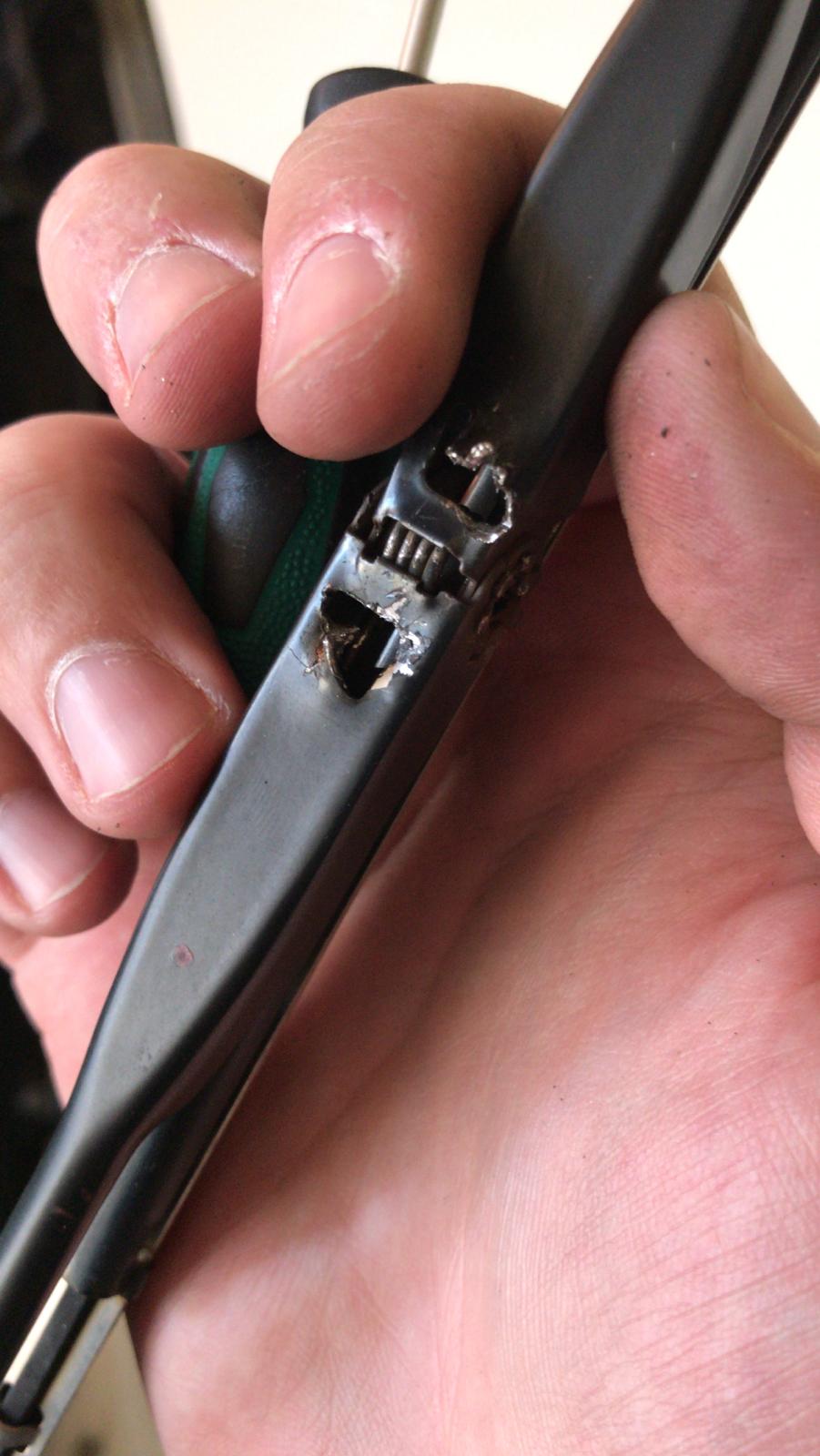 | Sieht so aus, als wären die alten Wischer schon längere Zeit nicht mehr getauscht worden… |
